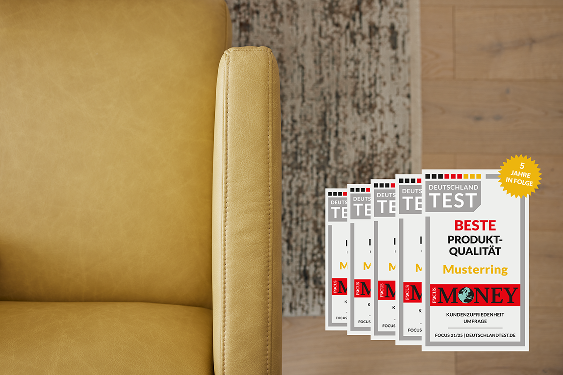 Zum fünften Mal in Folge wurde Musterring in der unabhängigen Verbraucherumfrage von Focus Money und DEUTSCHLAND TEST zur Nummer 1 in Sachen Produktqualität gewählt. Diese Auszeichnung unterstreicht den hohen Qualitätsanspruch, den Musterring an seine Möbel stellt – mit hochwertigen Materialien, präziser Verarbeitung und durchdachtem Design. Kunden können sich auf Möbel verlassen, die im Alltag überzeugen. Qualität, die begeistert und Vertrauen schafft.