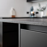 Ja, das stimmt: Ob schwarze Leuchten oder weiße Badkeramik – es sollte alles matt sein. Insbesondere bei der Badkeramik ist die Auswahl dann nicht mehr ganz so groß. Auch meine Küche, die Stühle und der Couchtisch haben matte Fronten.