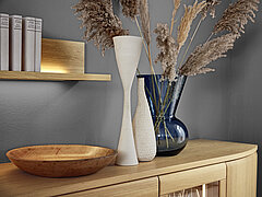 Some furniture systems are so flexible that they easily adapt to any floor plan. The best example is our extensive KIANA series. It not only impresses with its planning versatility, but also brings an extra portion of cosiness to the living and dining room with its high-quality solid wood fronts. Could you be won over by a warm, natural feel-good atmosphere?