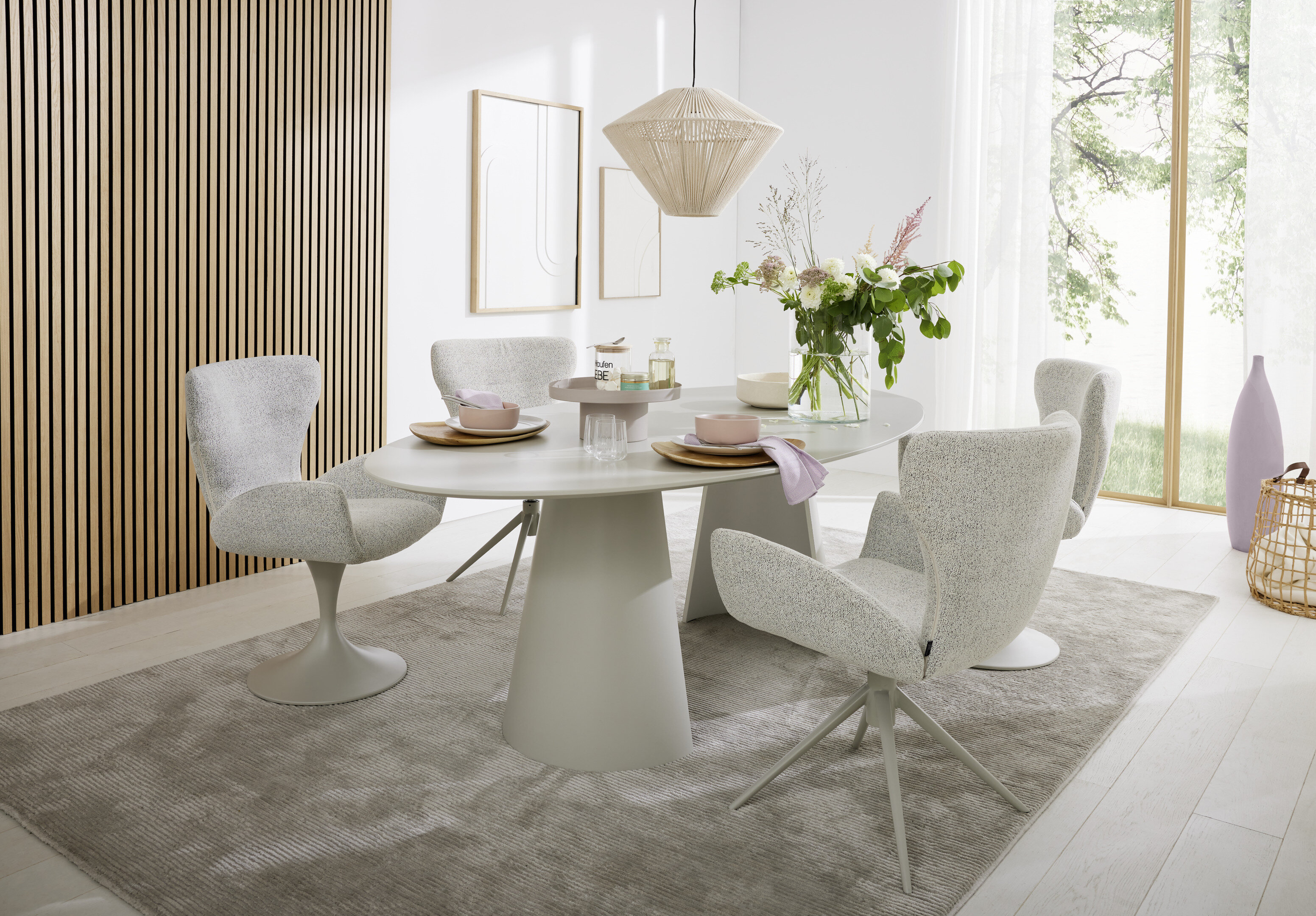 Der JustB! SP150 Esstisch von Musterring steht für modernes Design mit klarer Formensprache und hochwertiger Verarbeitung. Die lackierte Tischplatte in Seidengrau verleiht dem Tisch eine elegante, ruhige Ausstrahlung und schafft eine zeitlose Basis für unterschiedlichste Einrichtungsstile. Charakteristisch sind die markant geformten Tischbeine, die dem Tisch eine skulpturale Wirkung verleihen und gleichzeitig für hohe Stabilität sorgen. Die monochrome Farbgebung unterstützt den edlen Ton-in-Ton-Look und lässt den Tisch besonders harmonisch und hochwertig wirken.