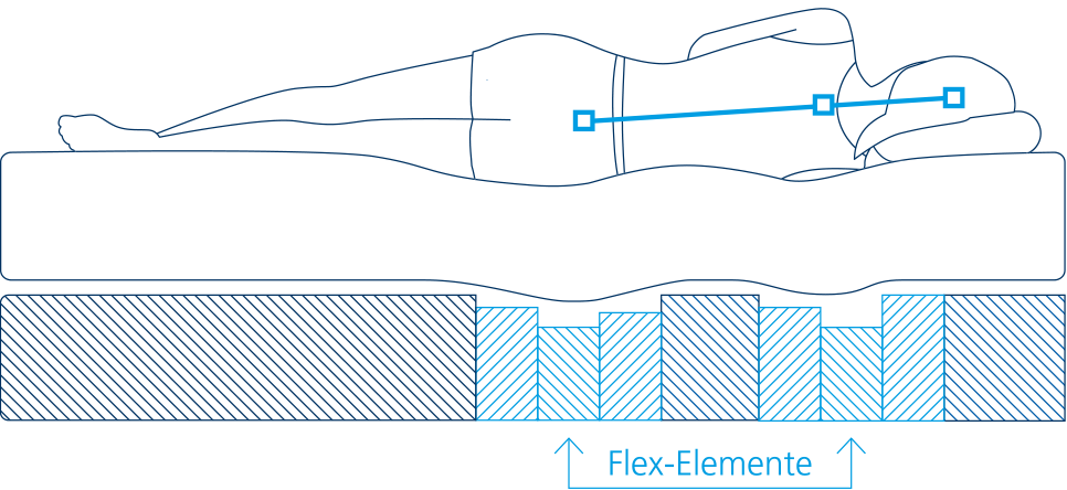 EFORMA ist das erste Boxspringbett mit Fiberglas-basierten Flex-Elementen: In jeder der beiden ID-Zonen lässt sich die Härte der Unterfederung mit Hilfe von manuell justierbaren Schiebereglern verändern, die auf vier hochstabilen, langlebigen Fiberglas-Schienen montiert sind. Wird das Bett von anderen Personen genutzt oder verändert sich im Lauf der Zeit die eigene Statur, können die Flex-Elemente mit wenigen Handgriffen wieder exakt angepasst werden.