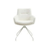 Auch kleine Räume können großartig sein. Der beste Beweis ist die Einliegerwohnung im Haus, die Tina nach der Trennung von ihrem Mann bezogen hat. Hier trifft sie sich mit Freundinnen, hilft den Kindern bei den Hausaufgaben, lässt die Seele baumeln oder arbeitet nebenher ein bisschen. Eine wortwörtlich runde Sache ist der Tisch aus unserer Serie KARA-FRAME. Das Modell ist genau wie die gemütlichen Stühle MR 4010 ganz bewusst im schlichten, aber stylischen Weiß gehalten. So wirkt der kompakte Raum weitläufig, offen und freundlich.
