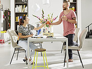 Beim gemeinsamen Essen möchte man die Zeit vergessen und entspannt genießen. Besonders gut funktioniert das auf den Stühlen unseres Programms NEVIO. Denn ob mit oder ohne Armlehne – die Esszimmerstühle der Serie sind nicht nur bequem, sondern auch in ganz unterschiedlichen Varianten erhältlich. Allein die verschiedenen Metallfüße und Bezüge schenken dir ganz neue Möglichkeiten bei der Einrichtung deines Esszimmers.