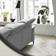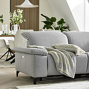 Den Sofas aus unserer Serie MR 370 sieht man auf den ersten Blick an, wie bequem sie sind. Eine voluminöse Polsterung und vielfältige Komfortfunktionen machen den nächsten Serienmarathon in jeder Hinsicht zu einem entspannenden Erlebnis. Auch mit einem Bezug in zeitlosem Grau ist die Couch weit davon entfernt, wie eine graue Maus zu wirken. Schwarze Metallfüße bieten sich an, um mit kleinen Kontrasten eine große Wirkung zu erzielen.