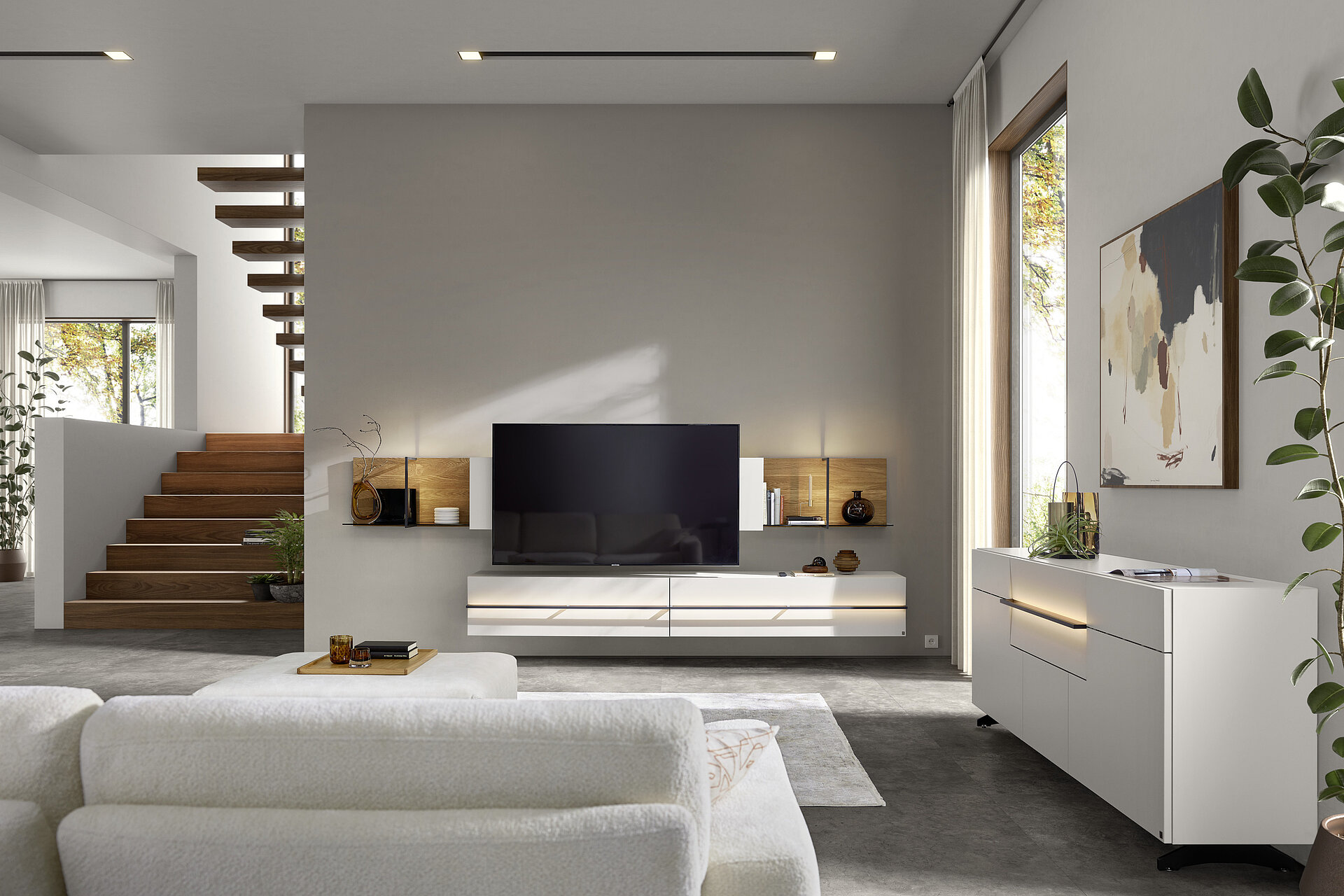 Klar – der Fernseher, die Spielekonsole und die Sound-Anlage brauchen viel Platz und sollten clever positioniert werden. Aber was ist mit deinen Deko-Accessoires, Büchern, Bildern oder den neuen Weingläsern? MAESTRA bietet auch hierfür eine Lösung. Vom Lowboard über Sideboards und Vitrinen bis hin zu Hängeelementen und Paneelen hast du hier viele verschiedene Möglichkeiten, um Ordnung und Übersicht zu schaffen. So hast du mehr Platz fürs Wesentliche und vor allem eine aufgeräumte Atmosphäre, um im Alltag abzuschalten.